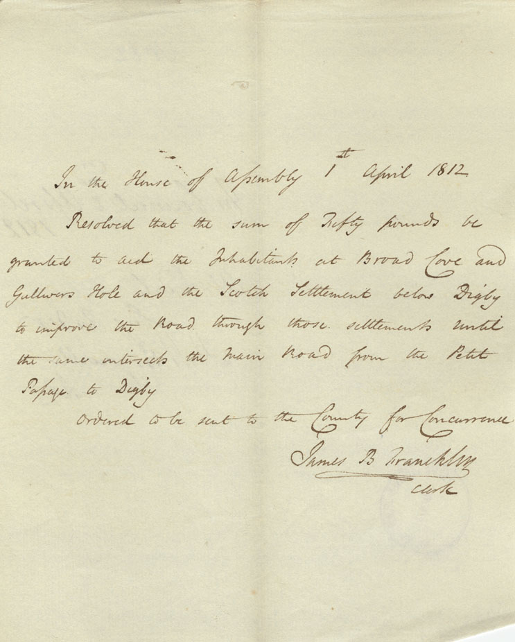 Reference: Nova Scotia House of Assembly Nova Scotia Archives RG 5 Series A volume 18 number 104