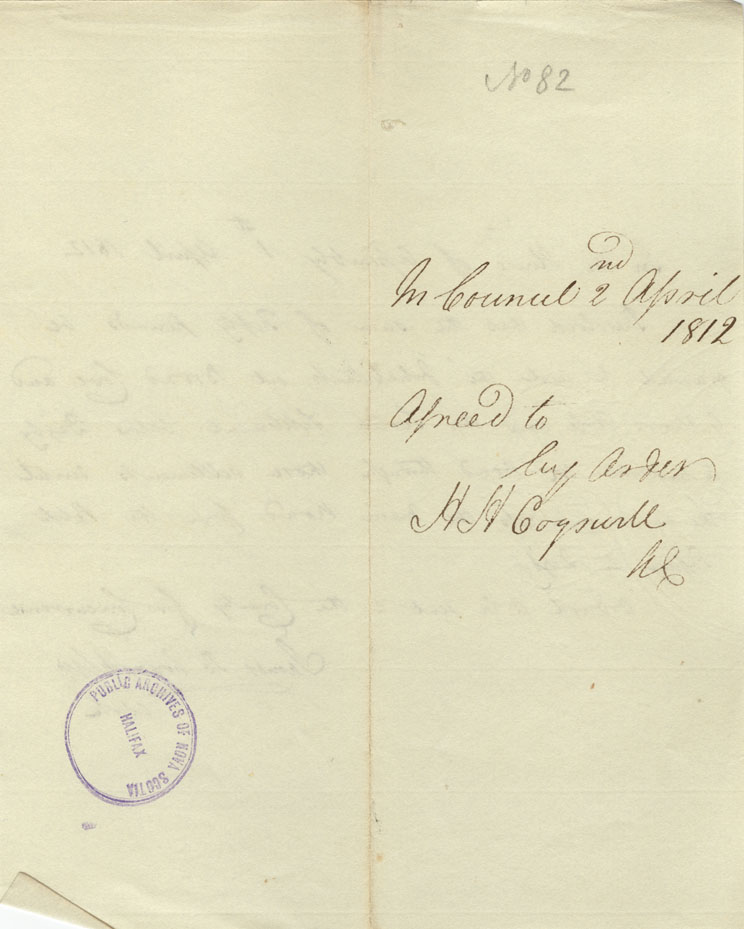 Reference: Nova Scotia House of Assembly Nova Scotia Archives RG 5 Series A volume 18 number 104
