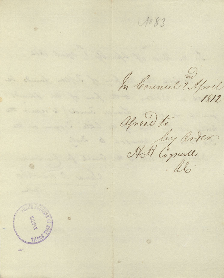 Reference: Nova Scotia House of Assembly Nova Scotia Archives RG 5 Series A volume 18 number 104