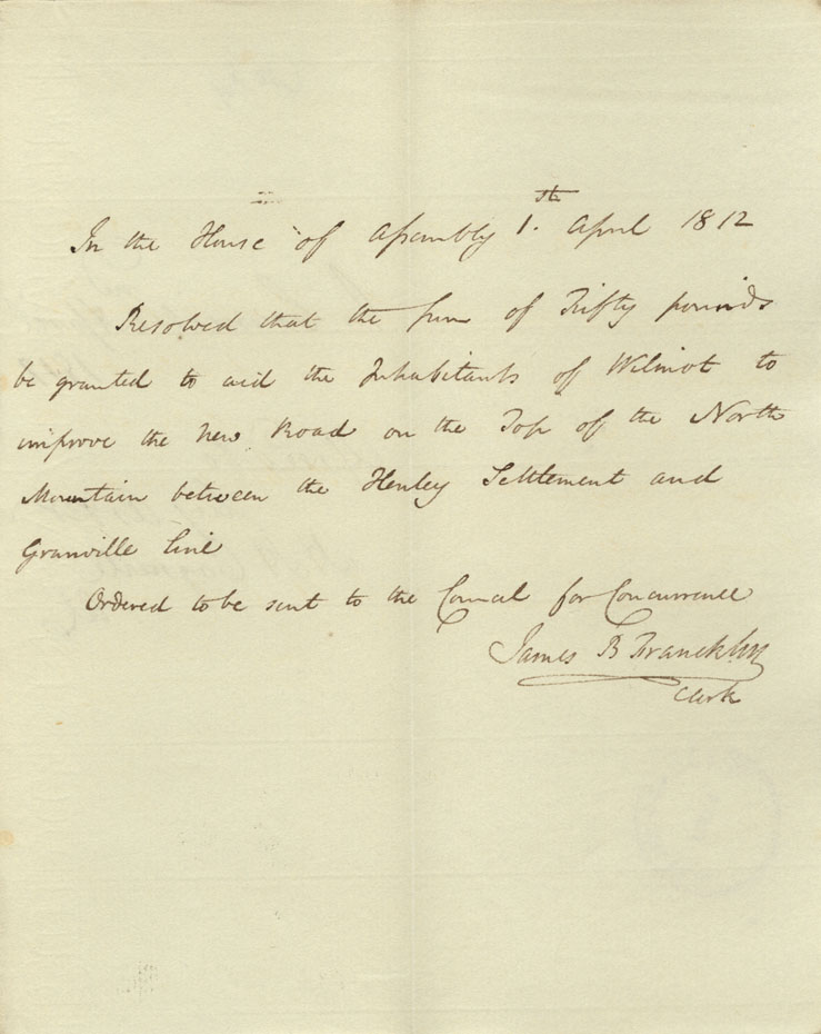 Reference: Nova Scotia House of Assembly Nova Scotia Archives RG 5 Series A volume 18 number 104
