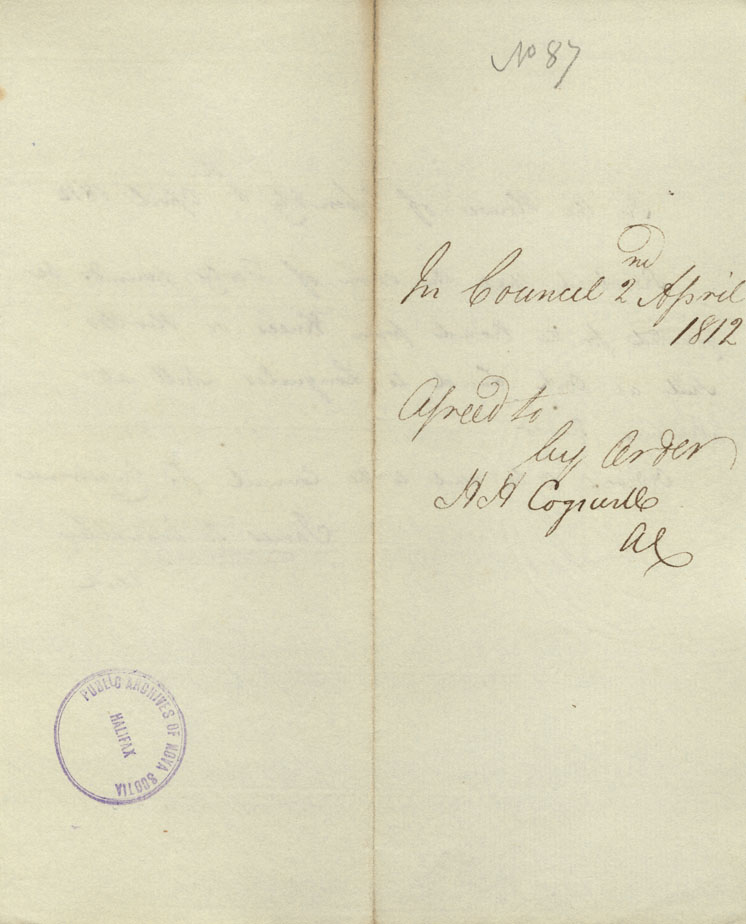 Reference: Nova Scotia House of Assembly Nova Scotia Archives RG 5 Series A volume 18 number 104