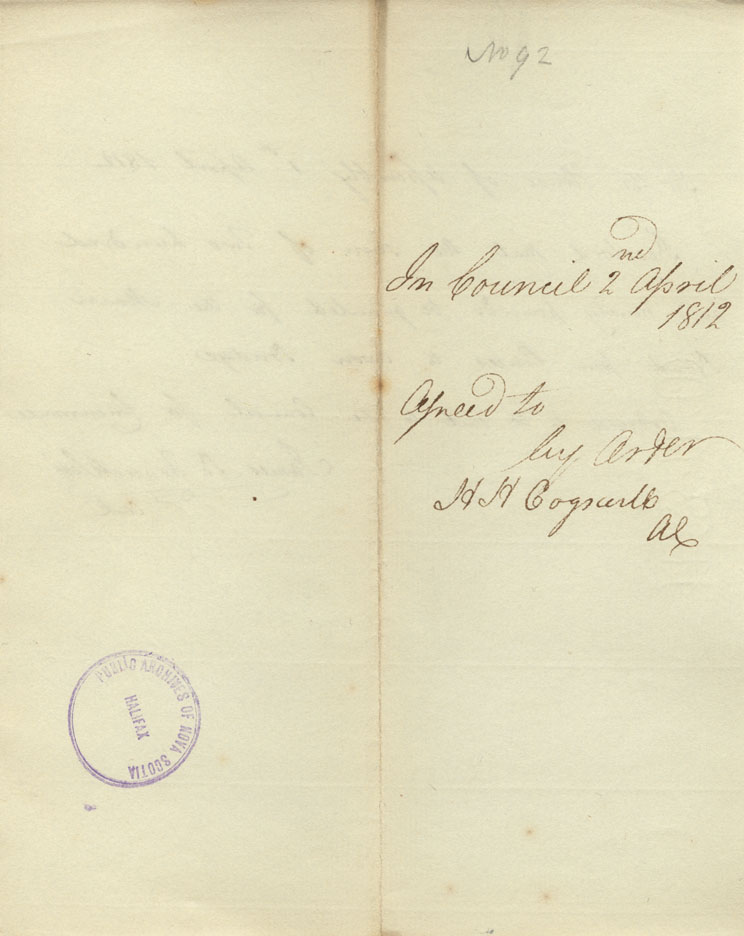 Reference: Nova Scotia House of Assembly Nova Scotia Archives RG 5 Series A volume 18 number 104
