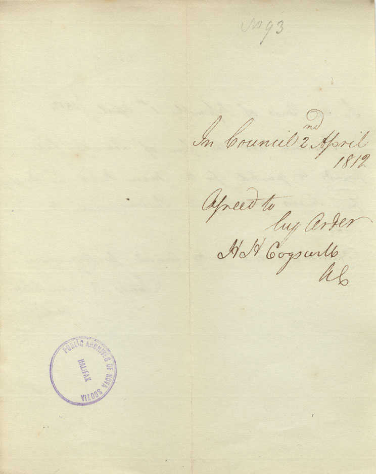 Reference: Nova Scotia House of Assembly Nova Scotia Archives RG 5 Series A volume 18 number 104