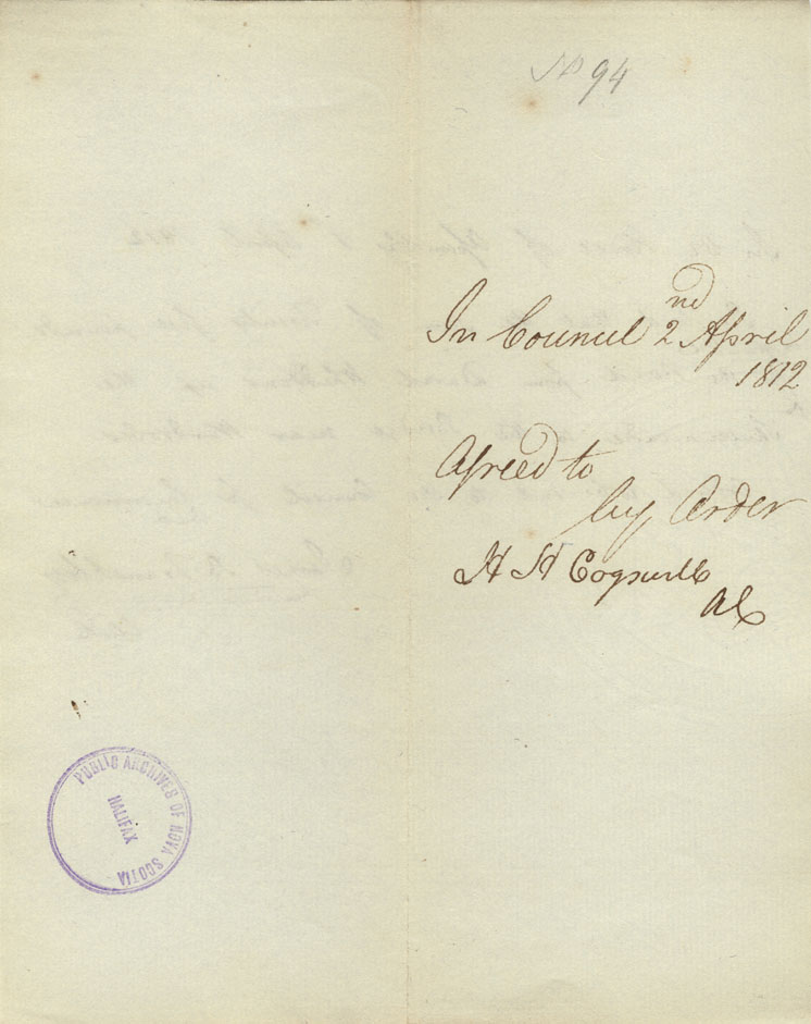 Reference: Nova Scotia House of Assembly Nova Scotia Archives RG 5 Series A volume 18 number 104