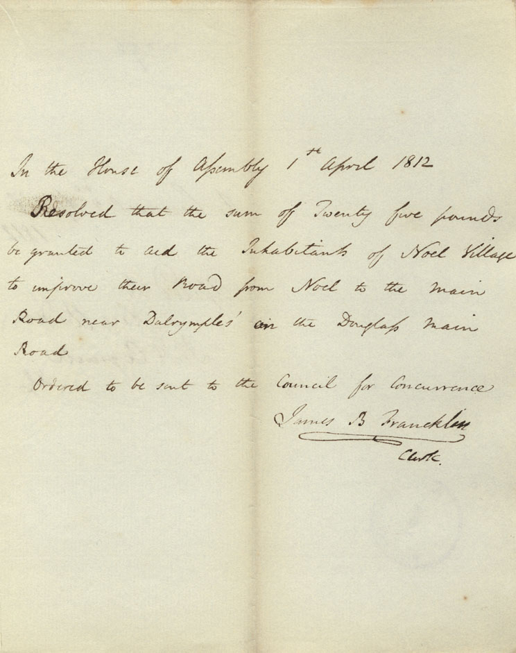 Reference: Nova Scotia House of Assembly Nova Scotia Archives RG 5 Series A volume 18 number 104