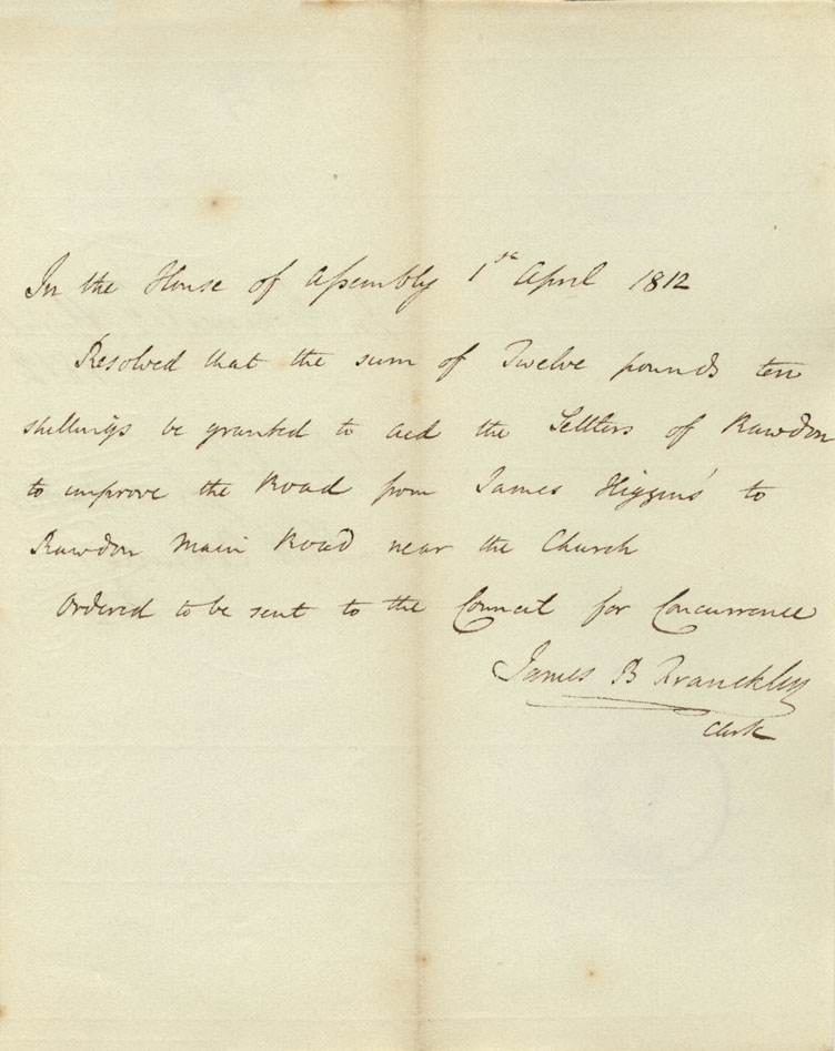 Reference: Nova Scotia House of Assembly Nova Scotia Archives RG 5 Series A volume 18 number 104