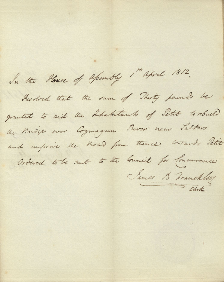 Reference: Nova Scotia House of Assembly Nova Scotia Archives RG 5 Series A volume 18 number 104