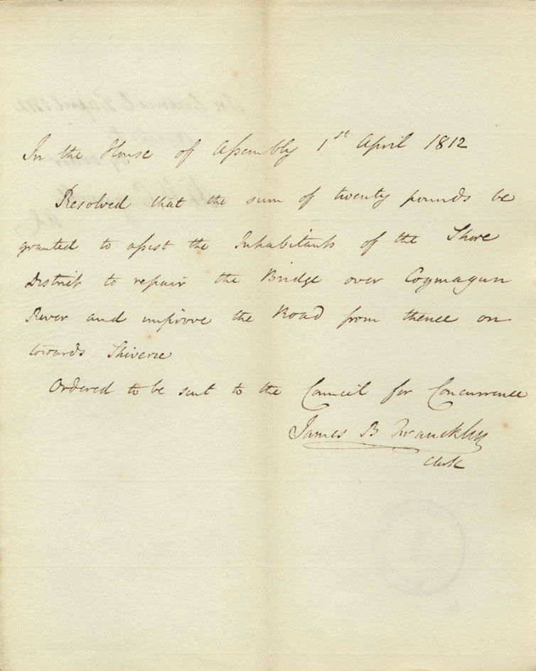 Reference: Nova Scotia House of Assembly Nova Scotia Archives RG 5 Series A volume 18 number 104