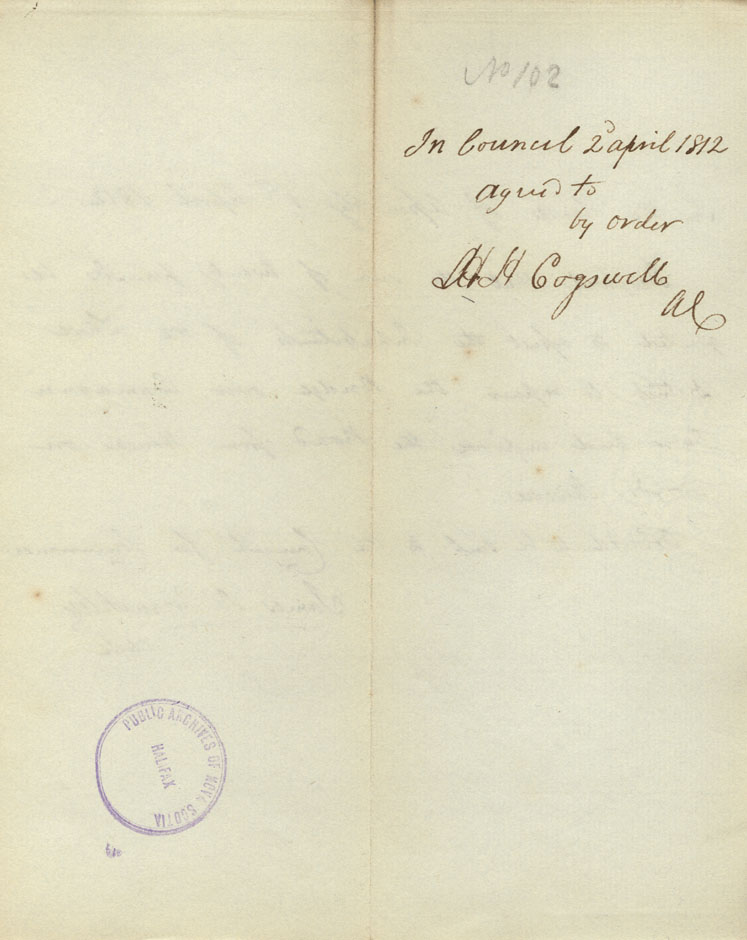 Reference: Nova Scotia House of Assembly Nova Scotia Archives RG 5 Series A volume 18 number 104