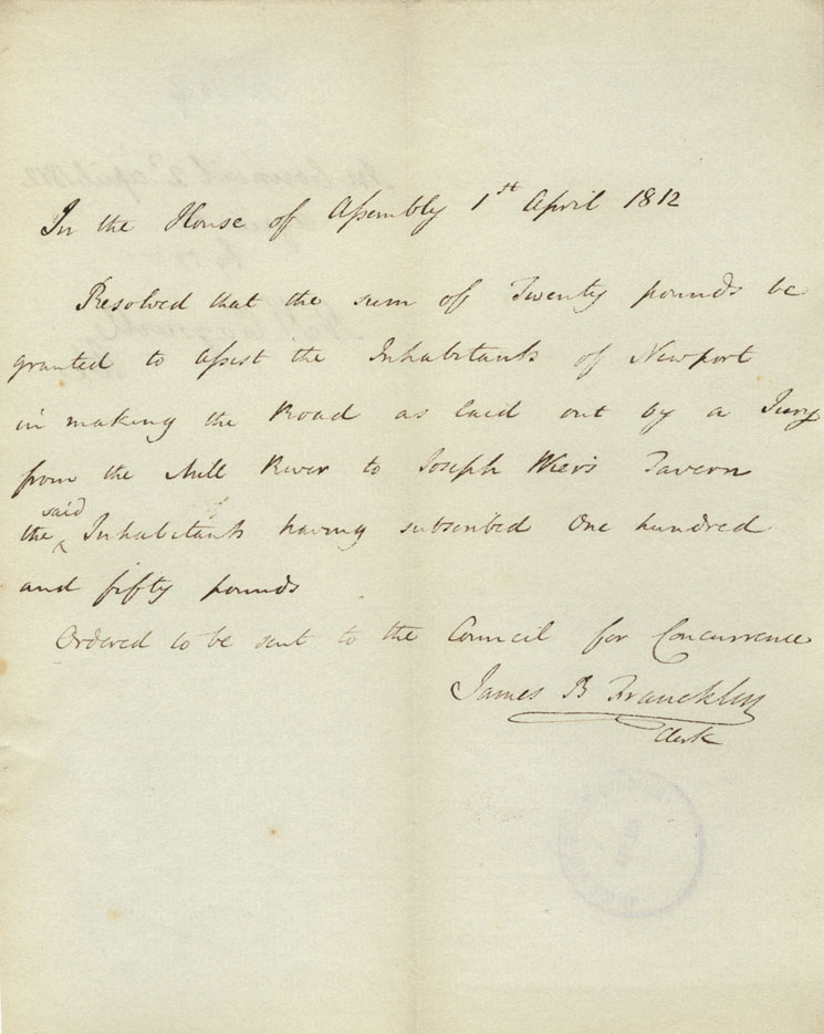 Reference: Nova Scotia House of Assembly Nova Scotia Archives RG 5 Series A volume 18 number 104