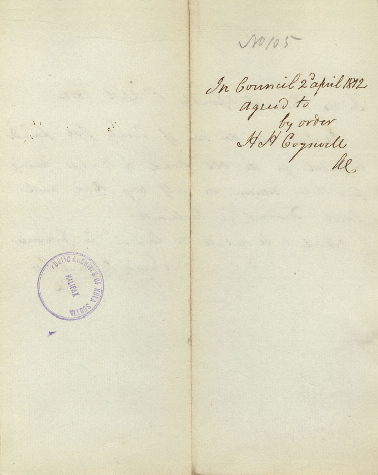 Reference: Nova Scotia House of Assembly Nova Scotia Archives RG 5 Series A volume 18 number 104