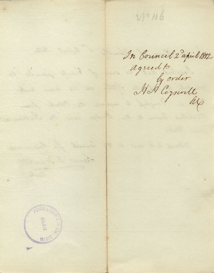 Reference: Nova Scotia House of Assembly Nova Scotia Archives RG 5 Series A volume 18 number 104
