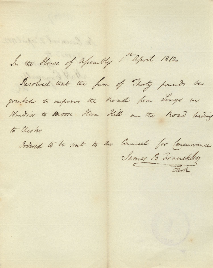 Reference: Nova Scotia House of Assembly Nova Scotia Archives RG 5 Series A volume 18 number 104
