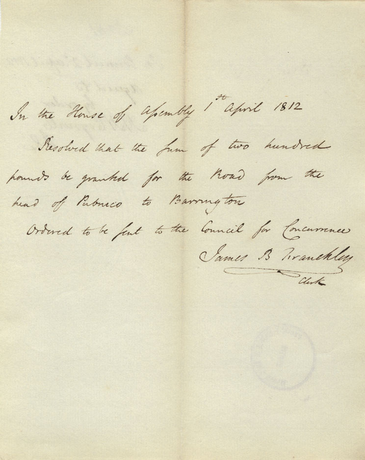 Reference: Nova Scotia House of Assembly Nova Scotia Archives RG 5 Series A volume 18 number 104
