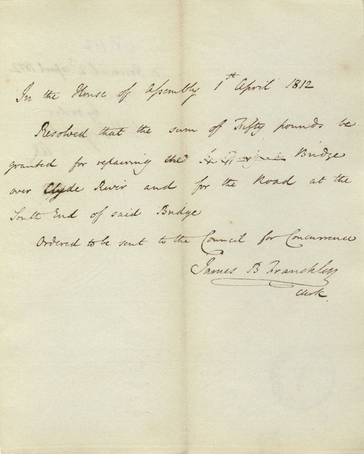 Reference: Nova Scotia House of Assembly Nova Scotia Archives RG 5 Series A volume 18 number 104