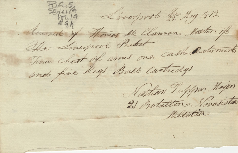 Account, Province of Nova Scotia with John George Pyke, Quarter-Master General of the militia for carriage of arms, etc. and various enclosed accounts, notes and invoices.