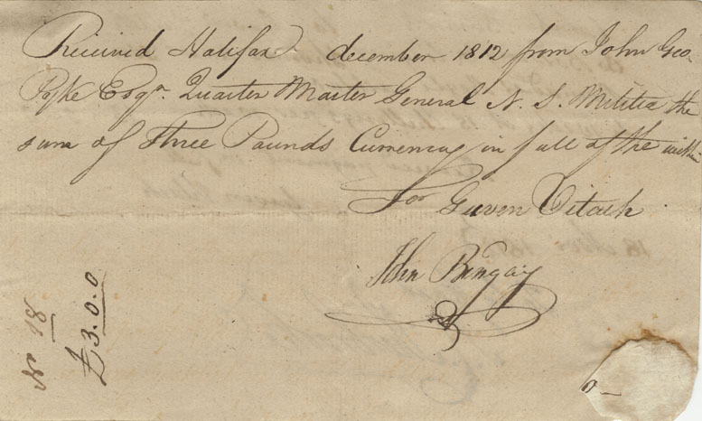Account of John George Pyke, Adjutant-General of Militia, for victualling part of the militia from 18 November 1812 to 16 February 1813, with vouchers, bills, etc. for other militia expenses.