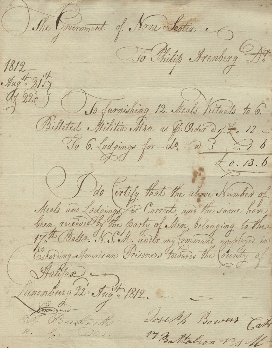 Account of John George Pyke, Adjutant-General of Militia, for victualling part of the militia from 18 November 1812 to 16 February 1813, with vouchers, bills, etc. for other militia expenses.