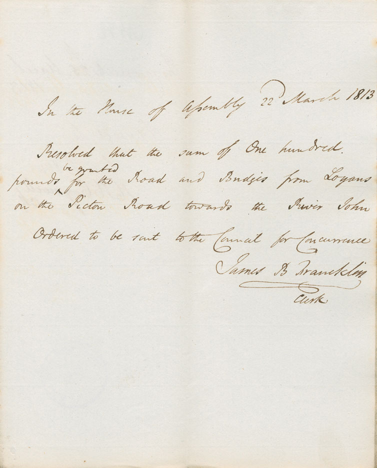 Reference: Nova Scotia House of Assembly Nova Scotia Archives RG 5 Series A volume 19 number 62