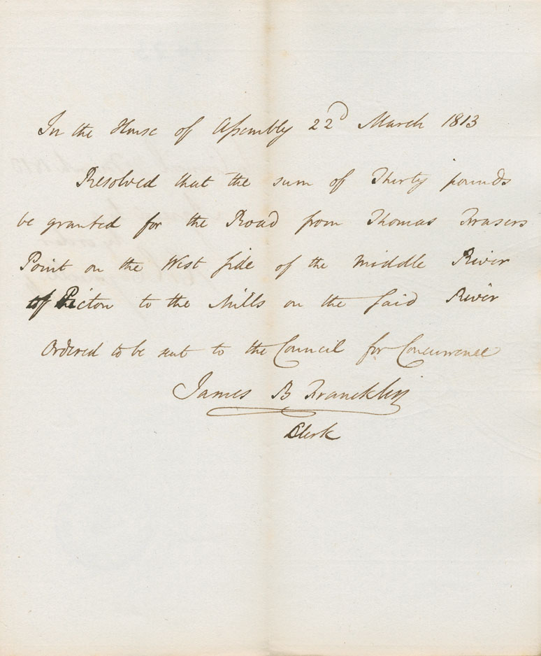 Reference: Nova Scotia House of Assembly Nova Scotia Archives RG 5 Series A volume 19 number 62
