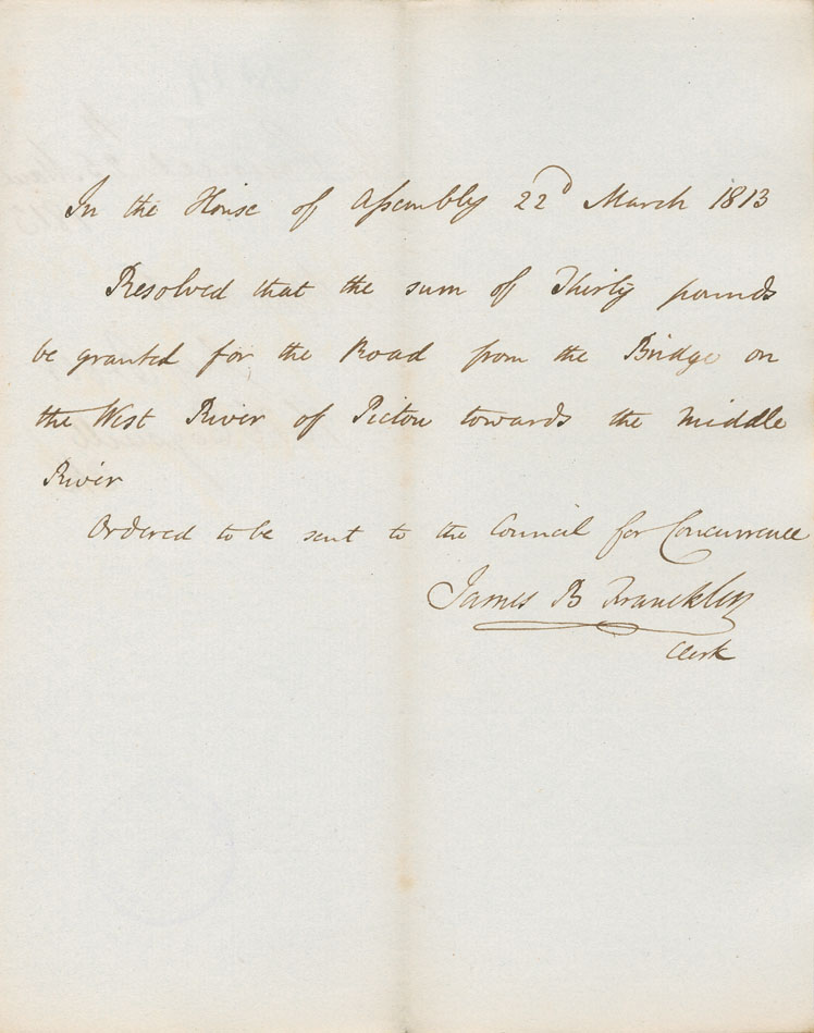 Reference: Nova Scotia House of Assembly Nova Scotia Archives RG 5 Series A volume 19 number 62