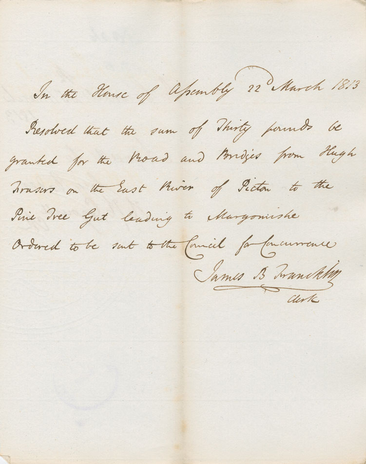 Reference: Nova Scotia House of Assembly Nova Scotia Archives RG 5 Series A volume 19 number 62