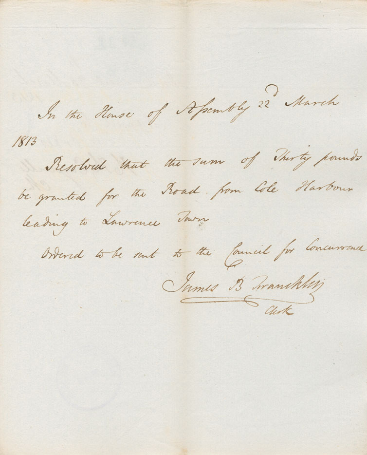 Reference: Nova Scotia House of Assembly Nova Scotia Archives RG 5 Series A volume 19 number 62