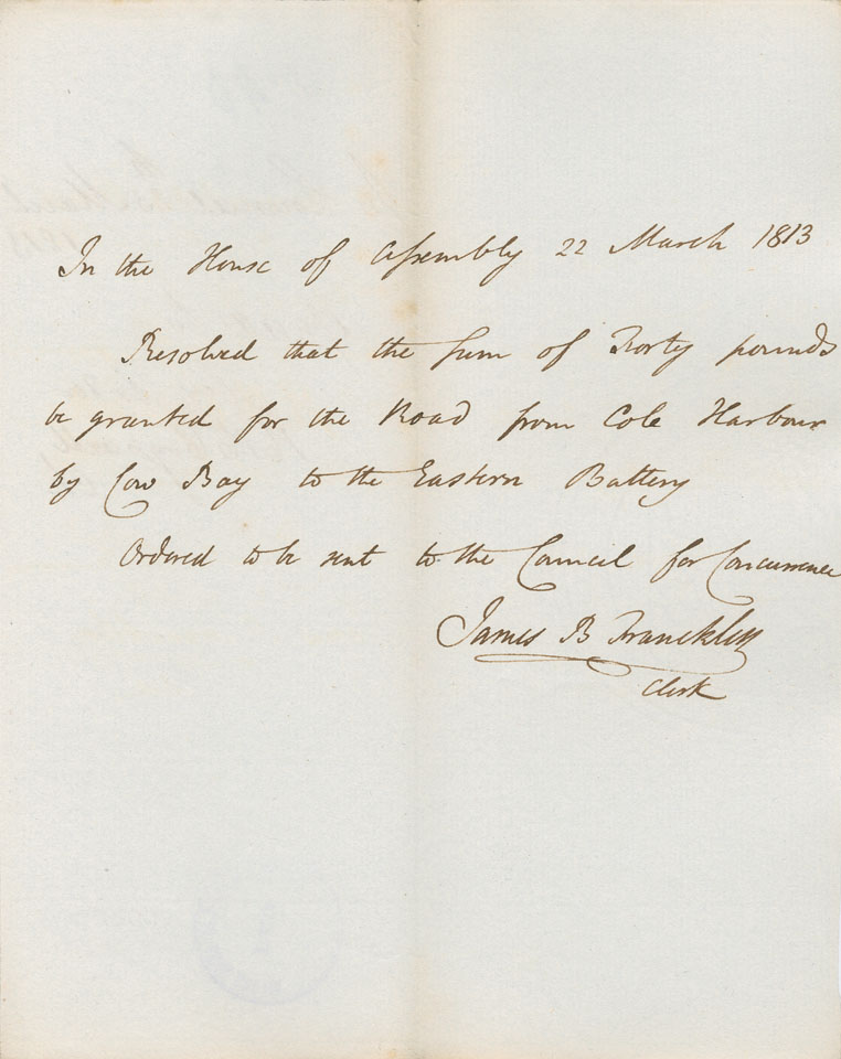 Reference: Nova Scotia House of Assembly Nova Scotia Archives RG 5 Series A volume 19 number 62
