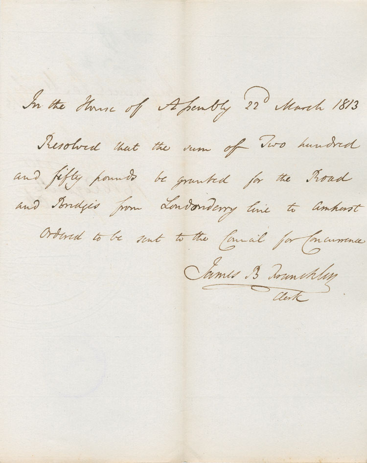 Reference: Nova Scotia House of Assembly Nova Scotia Archives RG 5 Series A volume 19 number 62