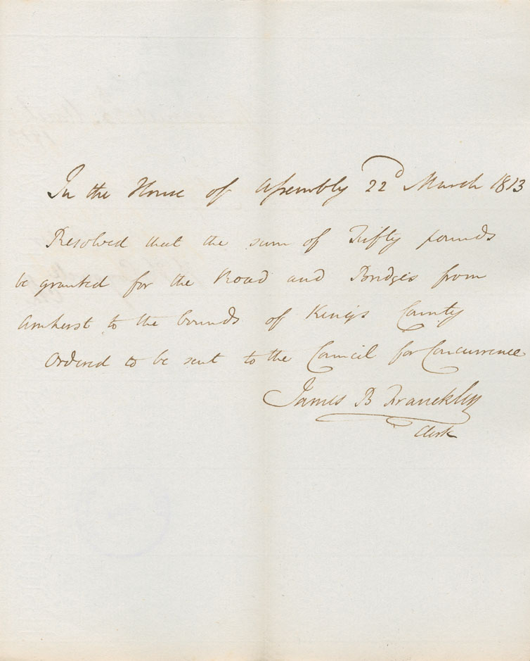 Reference: Nova Scotia House of Assembly Nova Scotia Archives RG 5 Series A volume 19 number 62