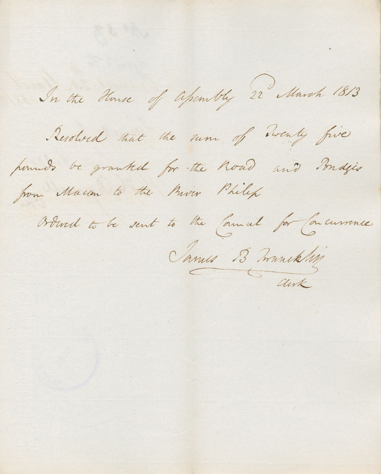 Reference: Nova Scotia House of Assembly Nova Scotia Archives RG 5 Series A volume 19 number 62