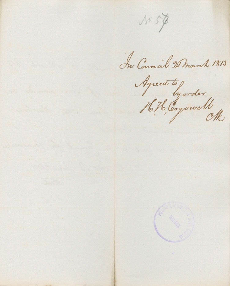 Reference: Nova Scotia House of Assembly Nova Scotia Archives RG 5 Series A volume 19 number 62