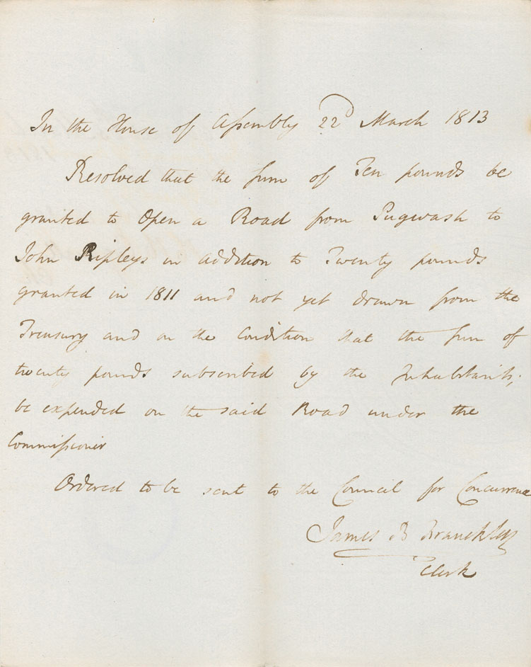 Reference: Nova Scotia House of Assembly Nova Scotia Archives RG 5 Series A volume 19 number 62