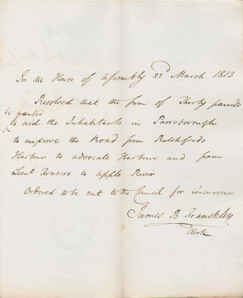 Reference: Nova Scotia House of Assembly Nova Scotia Archives RG 5 Series A volume 19 number 62