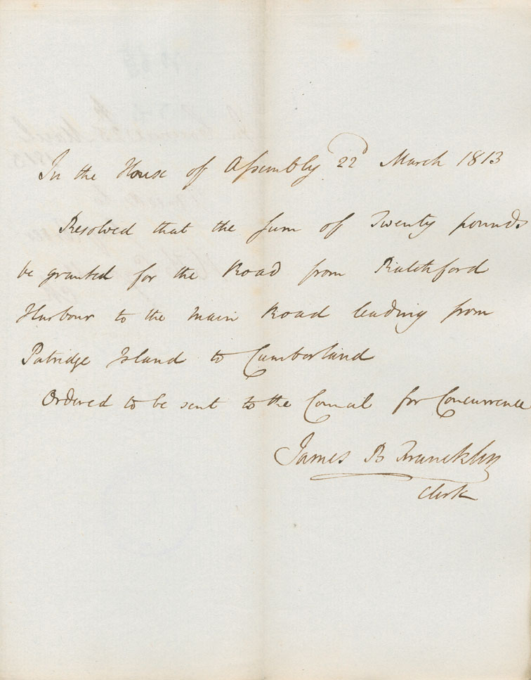 Reference: Nova Scotia House of Assembly Nova Scotia Archives RG 5 Series A volume 19 number 62