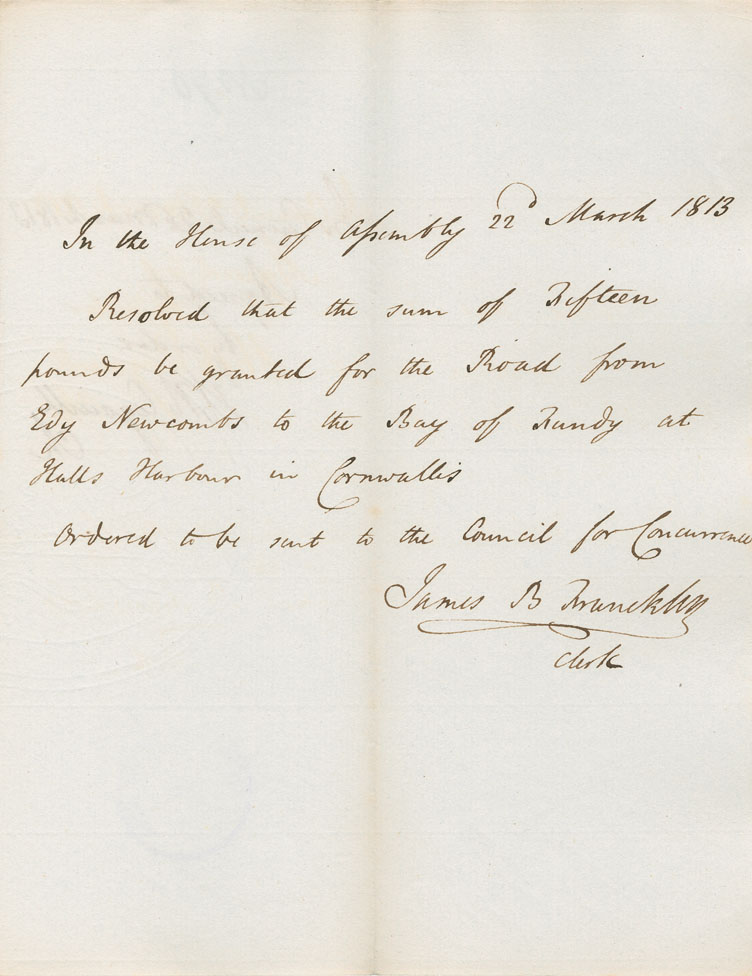 Reference: Nova Scotia House of Assembly Nova Scotia Archives RG 5 Series A volume 19 number 62