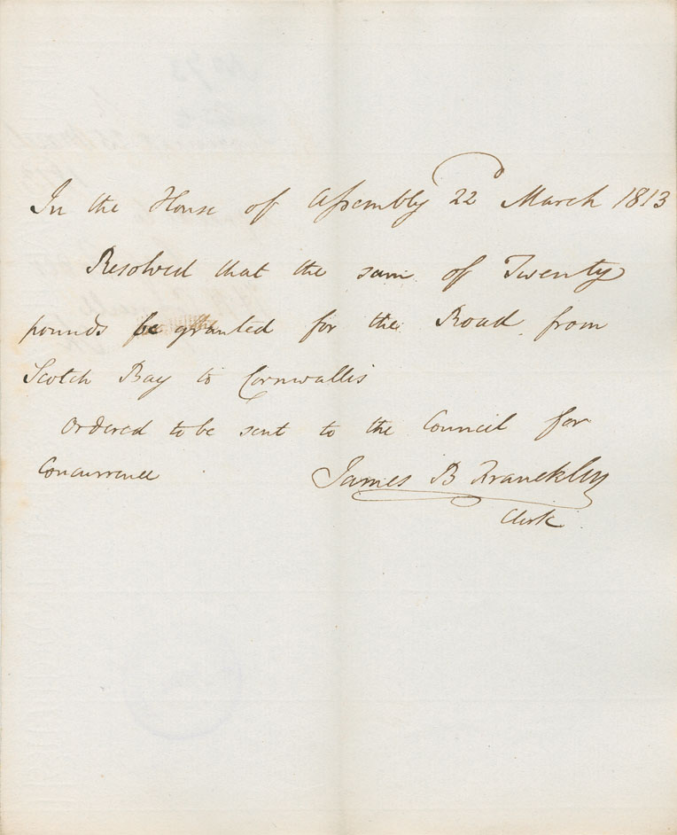 Reference: Nova Scotia House of Assembly Nova Scotia Archives RG 5 Series A volume 19 number 62