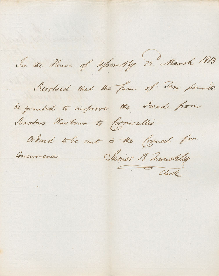 Reference: Nova Scotia House of Assembly Nova Scotia Archives RG 5 Series A volume 19 number 62
