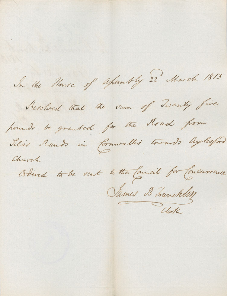 Reference: Nova Scotia House of Assembly Nova Scotia Archives RG 5 Series A volume 19 number 62