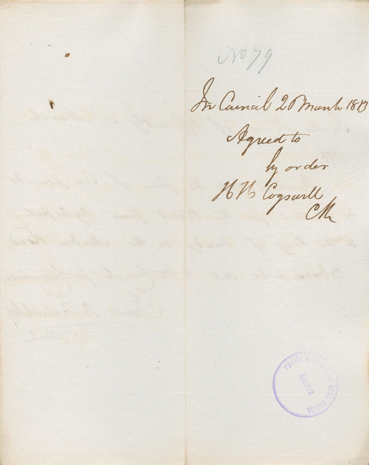Reference: Nova Scotia House of Assembly Nova Scotia Archives RG 5 Series A volume 19 number 62