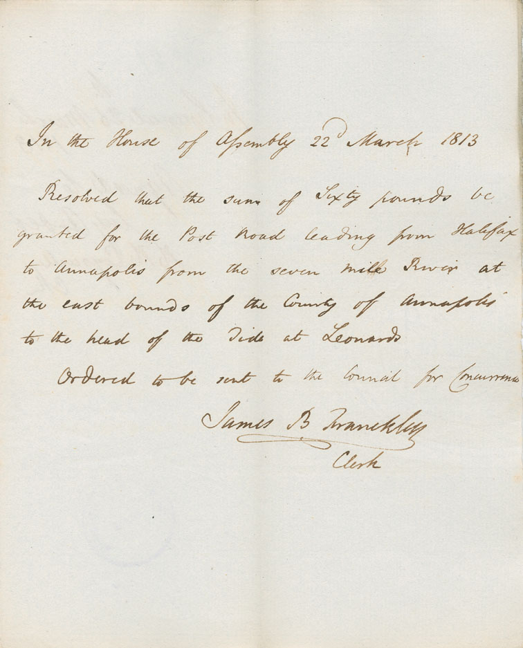 Reference: Nova Scotia House of Assembly Nova Scotia Archives RG 5 Series A volume 19 number 62
