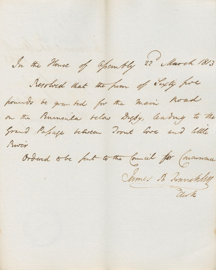 Reference: Nova Scotia House of Assembly Nova Scotia Archives RG 5 Series A volume 19 number 62