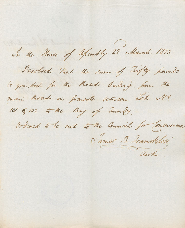 Reference: Nova Scotia House of Assembly Nova Scotia Archives RG 5 Series A volume 19 number 62