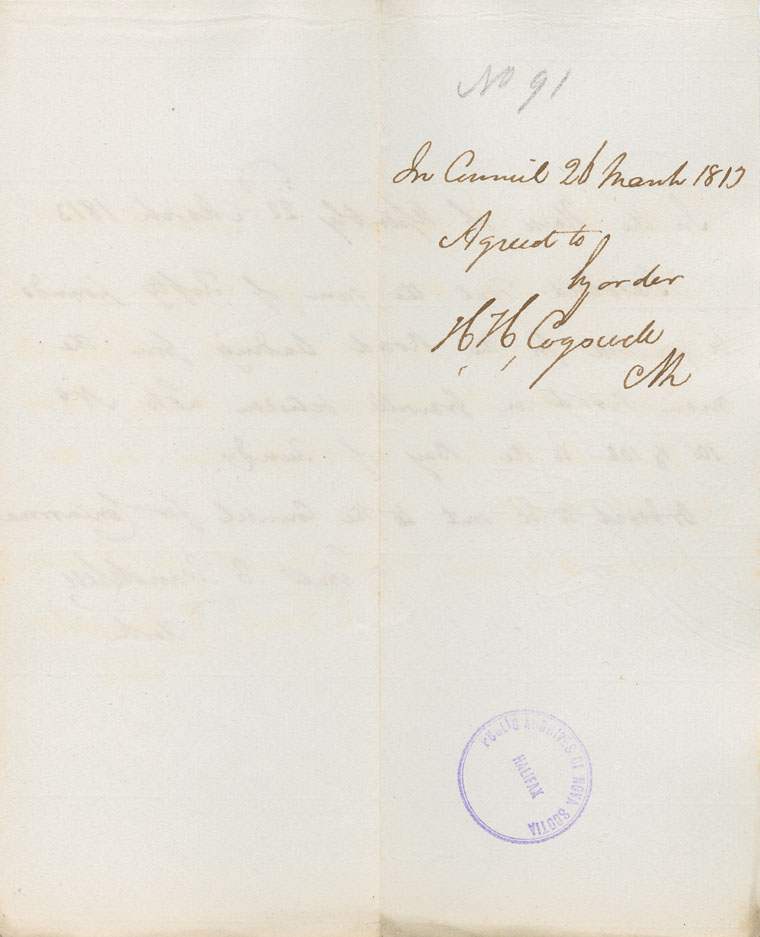 Reference: Nova Scotia House of Assembly Nova Scotia Archives RG 5 Series A volume 19 number 62