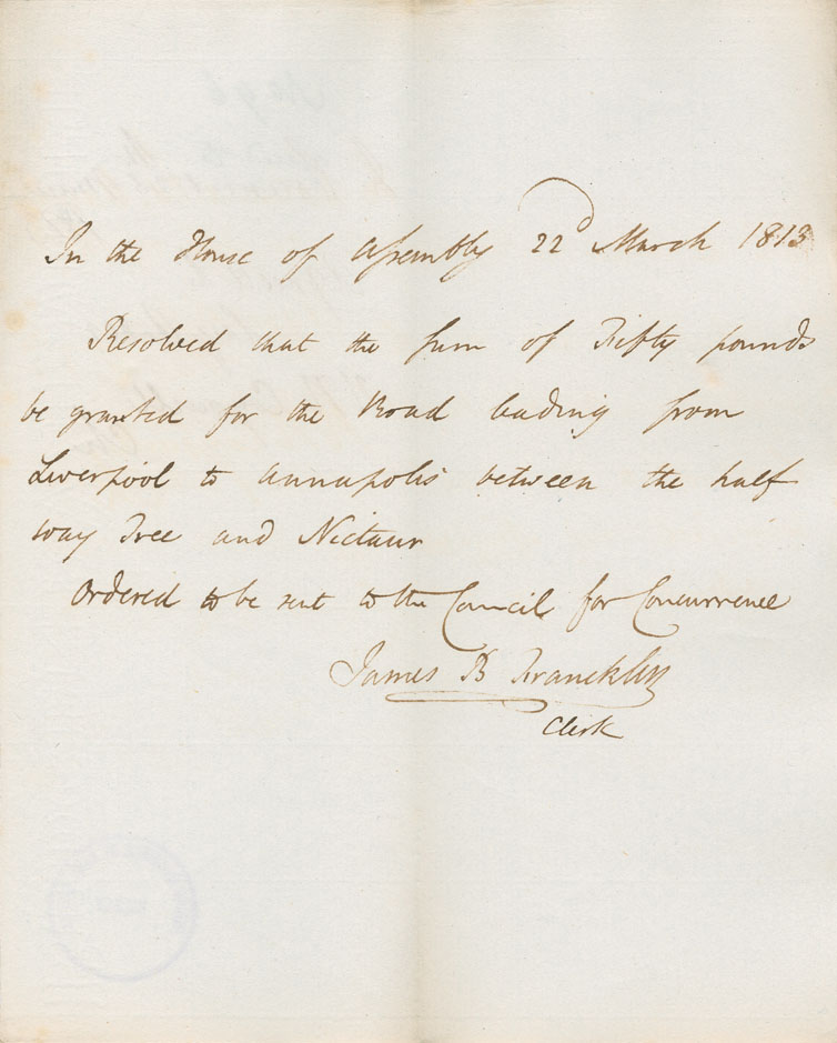 Reference: Nova Scotia House of Assembly Nova Scotia Archives RG 5 Series A volume 19 number 62