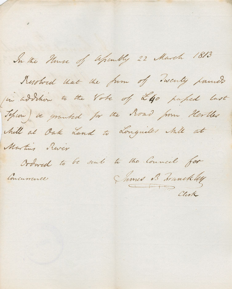 Reference: Nova Scotia House of Assembly Nova Scotia Archives RG 5 Series A volume 19 number 62