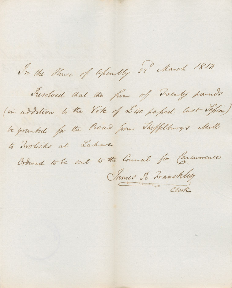 Reference: Nova Scotia House of Assembly Nova Scotia Archives RG 5 Series A volume 19 number 62