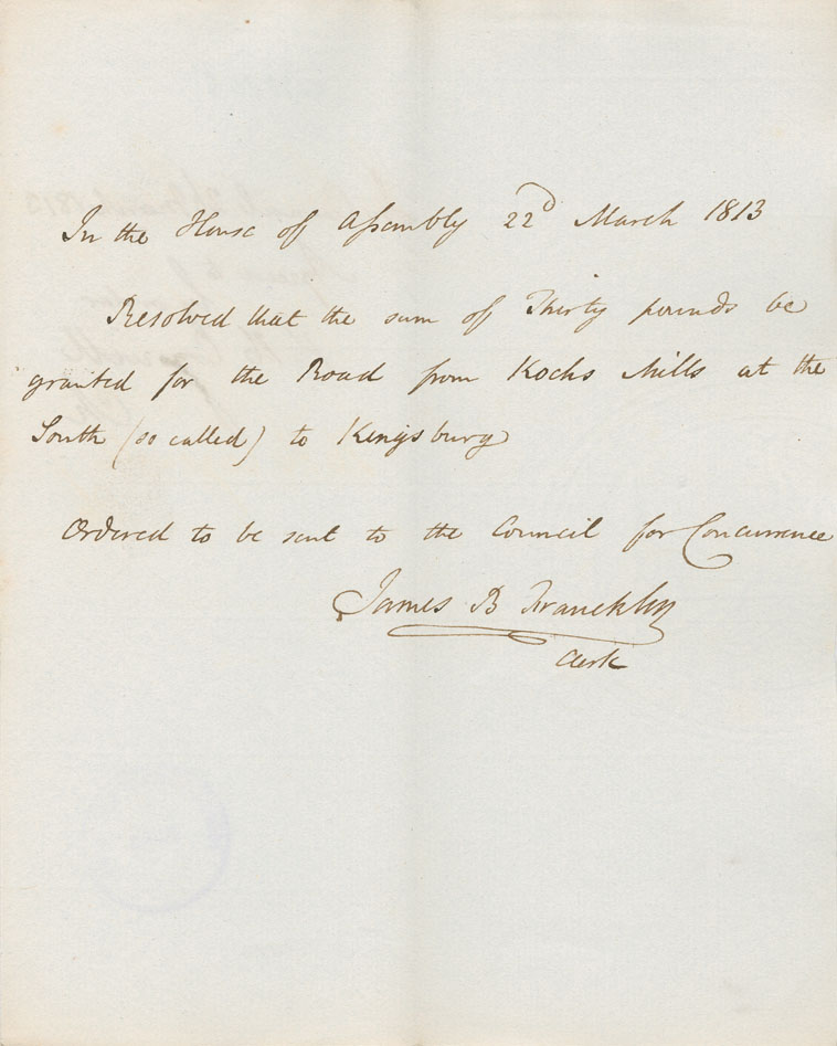 Reference: Nova Scotia House of Assembly Nova Scotia Archives RG 5 Series A volume 19 number 62
