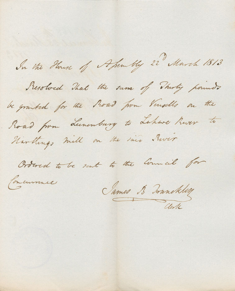 Reference: Nova Scotia House of Assembly Nova Scotia Archives RG 5 Series A volume 19 number 62