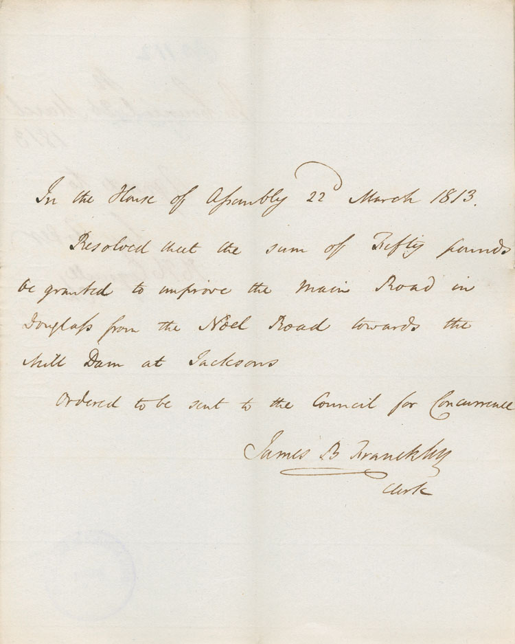 Reference: Nova Scotia House of Assembly Nova Scotia Archives RG 5 Series A volume 19 number 62